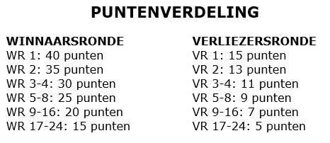 De eerste plaats zaterdag is goed voor gegarandeerd 300 euro. Het volledige inschrijfgeld (maximaal €480,=) zal worden uitgekeerd aan de overige prijswinnaars.