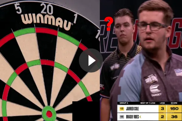 Bradly Roes als tegenstander van Jarred Cole getuige was deze nogal bizarre finish. Alsof dat nog niet erg genoeg was, bleek het bovendien ook nog eens een finish te zijn waarmee hij de wedstrijd in stijl afsloot terwijl de Nederlander stond te wachten op dubbel 18.