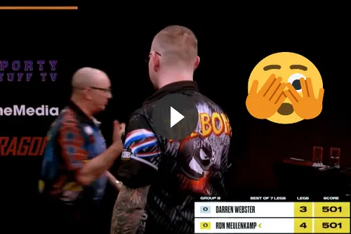 Darren Webster stond op een 3-0 voorsprong toen de Nederlander zijn speciale wapen inzette als we de woorden van de kleine man mogen geloven. Het leek in ieder geval effect te hebben want met 4-3 ging de winst alsnog naar Ron Meulenkamp.