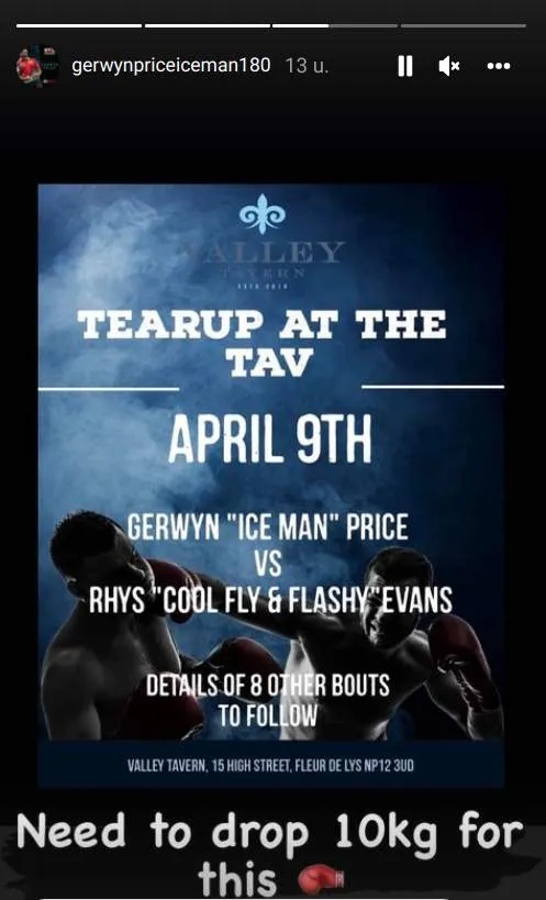 Gerwyn Price op 9 april de boksring in. Hij speelt dan een bokswedstrijd tegen Rhys Evans, een professionele golfer.