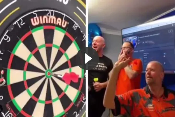 Raymond van Barneveld te gast bij DartsPlanet en toen lieten we in al zien dat de Nederlander in de mist ging toen hij dacht de partij te hebben gewonnen. Nu blikken we terug op een ander moment tijdens die avond. De vijfvoudig wereldkampioen werd uitgedaagd om vanaf zijn knieën op de bull te gooien wat resulteerde in onderstaande prestatie.