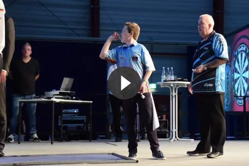 Vorige week toonden we van de 14-jarige Ben McCaffrey die in een hoogstaande partij wist te winnen van Michael van Gerwen. Maar dat het nog jonger kan bewees David Nachreiner in een duel met Phil Taylor. De pas 13-jarige wist Phil Taylor namelijk te verslaan op het podium tijdens de Hessen Darts Championships zoals te zien is op .