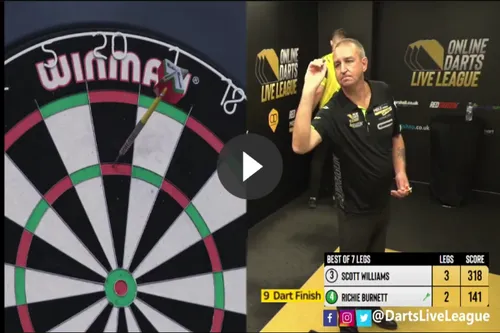 Eindelijk is Richie Burnett erin geslaagd om een 9-darter te gooien welke vastgelegd is op camera. De 53-jarige dartsspeler uit Wales deed dit gisterenavond op de Online Darts Live League tijdens zijn duel met Scott Williams. Beelden van dit bijzonder moment voor Richie Burnett zijn . Hiermee is Burnett overigens niet de oudste speler die ooit een perfecte leg gooide voor het oog van de camera. Vorig jaar was het namelijk Martin Adams die er ook in slaagde op 63-jarige leeftijd tijdens de Icons of Darts 2020.