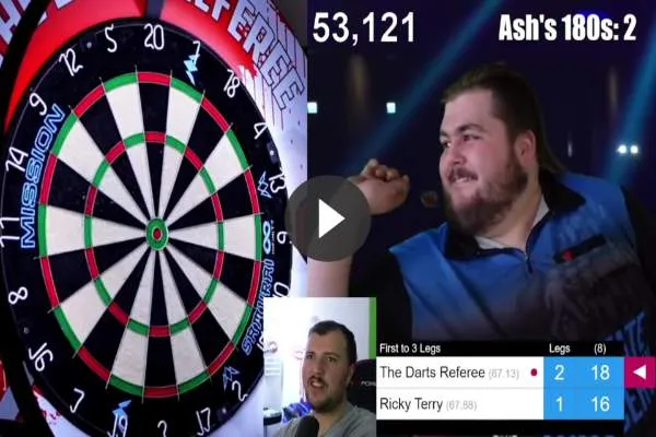 Tijdens een aflvering van 'TheDartsReferee vs Subscribers' was Ashley Coleman op bezoek. Toen één van de kandidaten een 180-er tegen hem gooide antwoordde hij met een schitterende finish vanaf 18 zoals je nog nooit zag. Deze bijzondere checkout is te zien op .