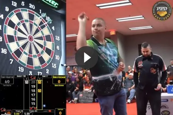 Dave Chisnall in Duitsland. Dit ontstaat echter door zijn rekenwerk als softtip speler en dat hij als voormalig kampioen daar waanzinnig goed is is blijkt wel uit het beste potje cricket/tactics ooit gespeeld zoals je kan zien op .