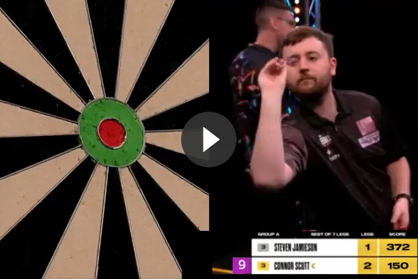 deze perfecte leg van Michael van Gerwen gehad waar hij ook een bull's-eye in had verwerkt. Dat was al sensationeel en nooit eerder vertoond voor het oog van de camera. Het komische is dat hij in een reactie onder de officiële video van de PDC werd uitgedaagd om te gaan voor 180 (triple 20, triple 20, triple 20), gevolgd door 171 (triple 19, triple 19, triple 19) waarna deze wordt afgesloten met 150 (bulls-eye, bulls-eye, bulls-eye). Het is niet ondenkbaar dat Connor Scott dit heeft gelezen en daar zijn inspiratie heeft opgedaan.