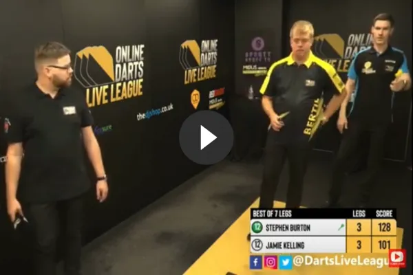 Tijdens de Online Darts League was er een opvallend moment in de partij tussen Stephen Button and Jamie Kelling. De reden was een issue met een score van Kelling en het feit dat er geen schrijvers aanwezig zijn maakte het bovendien nog een stuk lastiger. Het probleem ontstond tijdens de tweede worp van Jamie Kelling waardoor hij uiteindelijk de leg won met 541 punten zoals te zien is op .
