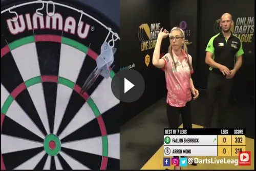 Tijdens de Online Live League kwam Fallon Sherrock weer bijzonder sterk voor de dag. Ze wist Arron Monk te verslaan en gaf bovendien een kleine demo weg tijdens de openingsleg. Bekijk dit bijzonder moment van Queen of the Palace op .