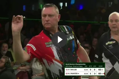 Kevin Painter heeft afgelopen weekend een indrukwekkend niveau laten zien op de World Seniors Darts Championship. Painter was onder andere verantwoordelijk voor de uitschakeling van Phil Taylor. Tijdens die partij gooide hij bovendien een ongebruikelijke bulls-eye finish zoals te zien is op .