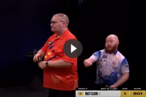 VIDEO: Ongemakkelijk moment wordt komisch opgelost door deze dartspeler