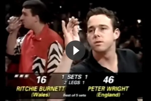 Peter Wright kan er wat van. Tijdens de Lakeside 1995 was de Schot bijna onherkenbaar van de partij. In duel met Ritchie Burnett ging hij voor een zeer bijzondere 46-finish zoals te zien is op .