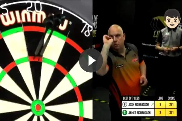 James Richardson wist vandaag een 9-darter te gooien op de Live League en deze perfecte leg krijgt bovendien een plek in de geschiedenisboeken omdat er iets unieks aan is dat we nog niet eerder hebben gezien. Hij gooide hem namelijk tegen zijn eigen zoon en het is voor het eerst dat een perfecte leg op camera tegen een familielid wordt gegooid. Beelden van de 9-darter en de prachtige reactie van hem en zijn zoon zijn .