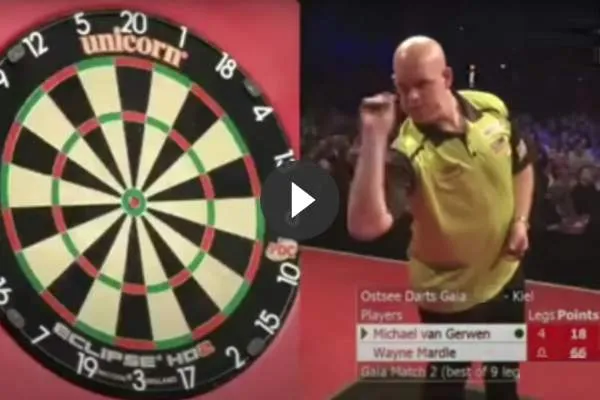 Het is momenteel de tijd van de demo-toernooien en op niet eerder vertoonde beelden zien we een mooie 18-finish zoals je nog nooit zag. Van Gerwen gooide deze demo-finish in de laatste leg van de finale tegen Wayne Mardle.