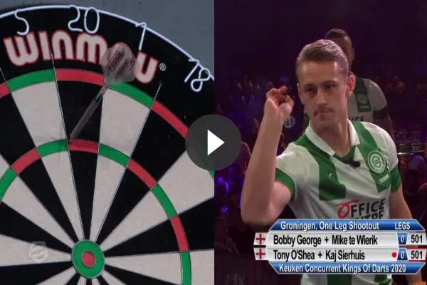 Op het podium van de Kings of Darts in Groningen kwamen FC Groningen spelers Mike te Wierik en Kaj Sierhuis in actie met Bobby George en Tony O'Shea. De dartslegendes waren duidelijk onder de indruk van het niveau van de voetbalspelers. Bekijk hieronder de beelden van dit prachtig duel.