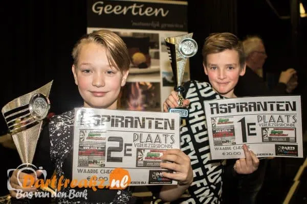 Bij de aspiranten is de titel gegaan naar Marvin van Deest. Hij wist op het podium af te rekenen met Damian Doorenspleet in 3-1. Eerder wist hij in de halve finale al geen leg af te staan aan Youri Veenstra