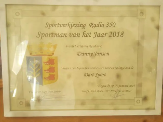Zij waren echter niet de enige want ook in de gemeente Rijssen-Holten ging de oorkonde naar een dartspeler. Danny Jansen was het die daar werd uitgekozen tot sportman van het jaar.