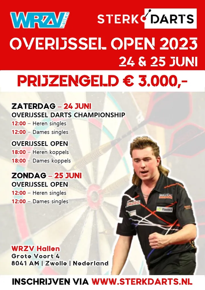 Op zaterdagmiddag beginnen ze met de Overijssel Darts Masters 2023: een heren single en dames singletoernooi. Op zaterdagavond vinden de koppeltoernooien plaats.