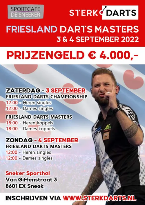 De Friesland Darts Masters 2022 is hét toernooi van de provincie Friesland. Dit tweedaagse-evenement zal plaatsvinden op 3 en 4 september 2022 in de Sneker Sporthal.
