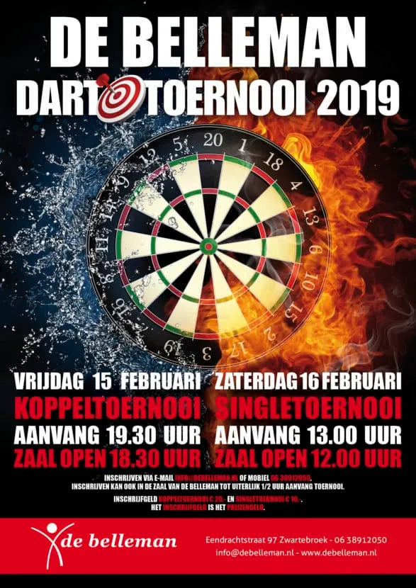 Het Belleman koppeltoernooi start op vrijdag 15 februari 2019 om 19.30 uur. De zaal gaat open om 18.30 uur.