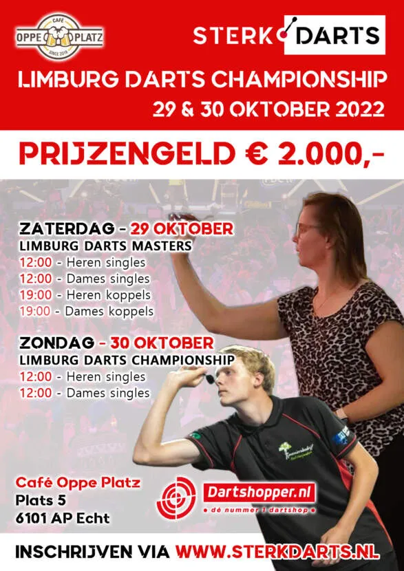 In onze reeks Darts Championships doen we alle provincies van Nederland aan. Net als vorig jaar zal het weekend van het Limburg Darts Championship 2022 gehouden worden in café Oppe Platz te Echt.