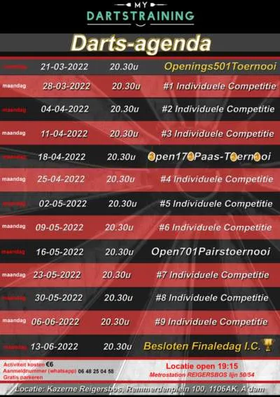 Voor de herstart van de Mydartstraining maandag zal deelname gratis zijn voor iedere deelnemer. Het unieke aan deze avonden is dat iedereen evenveel (4) wedstrijden speelt en de resultaten zullen van belang zijn op de finaledag (13/06/2022)