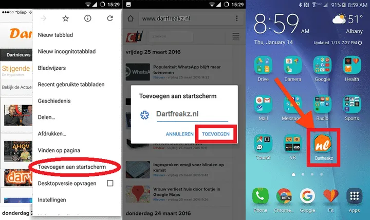 Surf met je smartphone, mobiel of tablet naar www.dartfreakz.nl en volg onderstaande stappen.