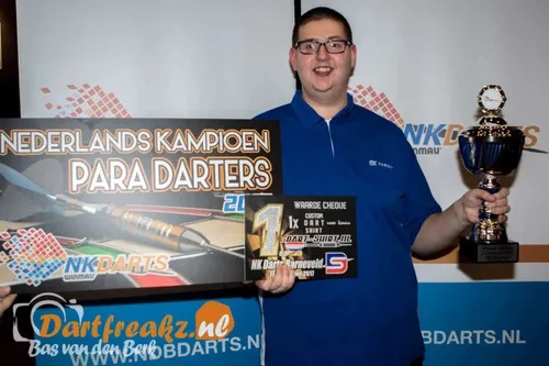 Sharon Prins. Het heren B toernooi is gewonnen door Jon Wheat man. Met 4-1 versloeg hij Sjoerd Prijs op het podium. Beelden van de damesfinale en de heren B finale zijn . Namens Dartfreakz.nl zijn we live ter plaatse voor een uitslagen, foto's en een livestream van de podiumwedstrijden. Het heren B toernooi is gewonnen door Jon Wheatman. Hij won de finale met 4-1 van Sjoerd Prijs. Ricardo Hermans won de finale van het toernooi bij de paradarters door in de finale Arie van der Rassel te verslaan. Uitslagen en verslagen van de jeugd . Jon Wheatman 4-1 Sjoerd Prijs () Martijn Kleermaker 3-4 Jelle Wachtmeester Arie van de Eijkel 3-4 Patrick Schop