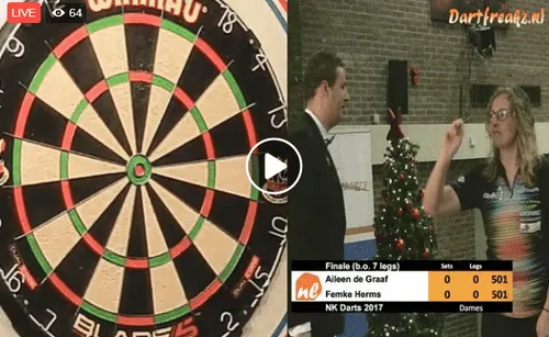 Aileen de Graaf was vandaag de sterkste dame. Ze wist in de finale Femke Herms met 4-2 te verslaan. De finale werd op het podium gespeeld en beide dames wisten o.a. een 180-er te gooien voor het oog van de camera. In de halve finale won De Graaf met 3-1 van