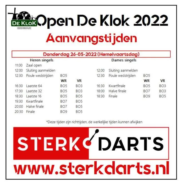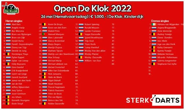 Op Hemelvaartsdag staat het Open De Klok 2022 op het programma. Er zijn nog nog maar 28 plaatsen beschikbaar voor het toernooi in Kinderdijk. Wil je mee doen, schrijf je dan tijdig in!