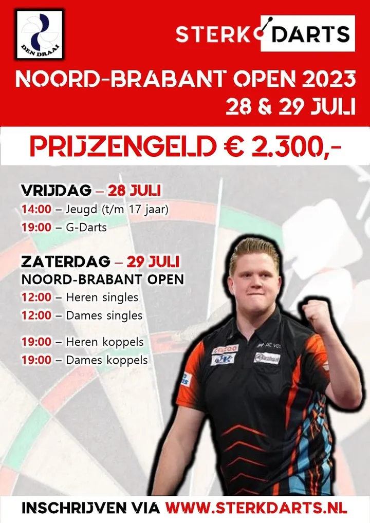 In 2023 vindt de eerste editie plaats van het Noord-Brabant Open. Het Noord-Brabant Darts Championshiop werd al wel eerder gespeeld. Toen wonnen Kim Huybrechts en Adriana van Wijgerden-Vermaat. Wie pakken dit jaar de titels?