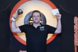 Wesley Harms met 2-0 in sets (3-2, 3-1). Onlangs wist hij op de WDF World Cup in Japan al het goud weg te kapen maar inmiddels heeft de jongeling ook al zijn eerste titel te pakken bij de heren.