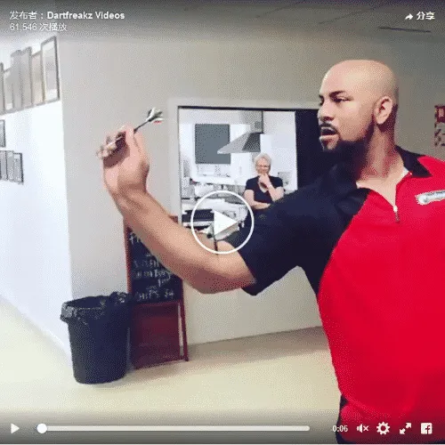 video een dartspijl richting het worp maar vangt er tegelijkertijd ook één op uit de lucht. Velen zullen de video meerdere malen moeten bekijken om te snappen wat er nu precies gebeurt.
