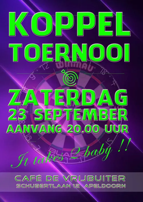 Mocht je dit weekend graag zelf de pijlen ter hand nemen dan kun je terecht bij De Vrijbuiter in Apeldoorn. Er wordt weer volop gegooid met op vrijdag de welbekende Money Darts. En op zaterdag wordt er een koppeltoernooi gespeeld.