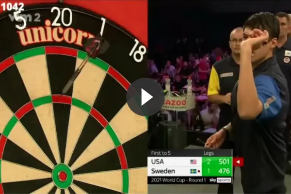 Tijdens het duel van the USA tegen Zweden gooide Danny Lauby een pijlsnelle 180-er. Hiermee gaat hij de strijd aan met