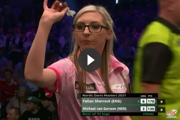 Fallon Sherrock. Het werd een waanzinnig duel waarbij de Engelse lange tijd gemiddelden van boven de 100,00 gooide en dodelijk was op de dubbels. Eerder wist ze ook al een waanzinnige comeback te realiseren tegen