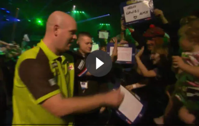 Michael van Gerwen. Tijdens de walk-on van de volgende halve finale werd dit helemaal goed duidelijk toen Van Gerwen en Anderson tegenover elkaar stonden. Het komisch moment tussen Van Gerwen en Tai Anderson (met zijn vader wachtend op het podium) is te bekijken op .