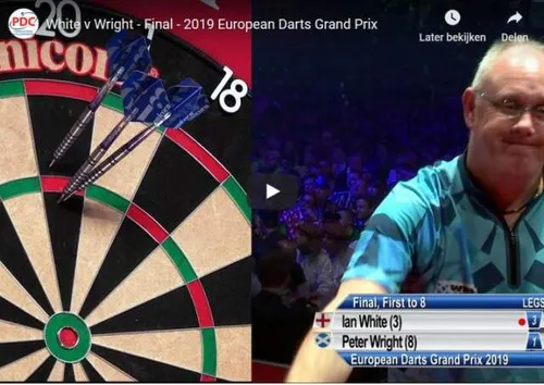 Zondagavond wist Ian White weer de finale te halen, deze keer van de European Darts Grand Prix. Zijn tegenstander hierin was Peter Wright. Het toernooi was exclusief te volgen voor abonnees van PDC TV, maar inmiddels heeft de PDC de beelden van de finale openbaar geplaatst. Natuurlijk willen we jullie deze niet onthouden en dus kun je nu de finale hieronder bekijken waarin nog een prachtige Big Fish voorbij kwam.