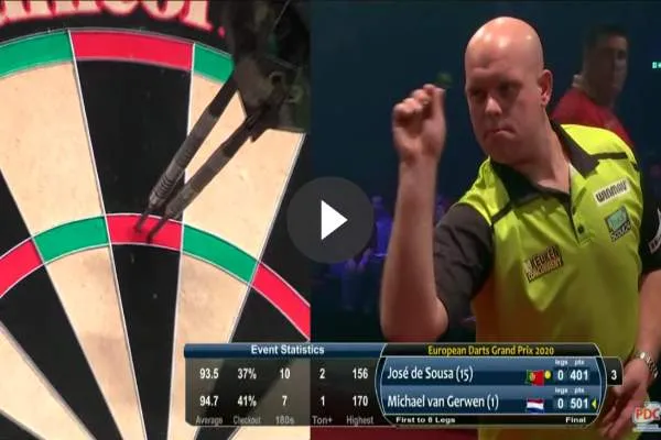 Jose de Sousa het tot de finale wisten te schoppen. De wedstrijden zijn exclusief te bekijken voor abonnees van PDC TV maar zojuist heeft de PDC de beelden van de finale vrijgegeven en dus zijn . https://www.sportvideos.tv/watch-final-european-darts-grand-prix-michael-van-gerwen-vs-jose-de-sousa/
