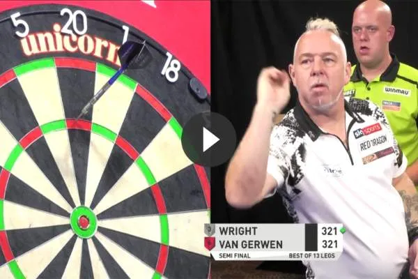 Peter Wright kwamen elkaar tegen op de openingsdag. Het werd een waanzinnig duel tussen de nummer 1 van de wereld en de huidige wereldkampioen. De wedstrijden zijn exclusief te bekijken voor abonnees van PDC TV maar zojuist heeft de PDC de beelden van deze halve finale vrijgegeven en dus zijn .