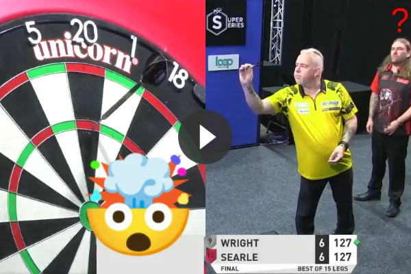 Peter Wright. Bij een stand van 6-6 stonden beide heren op 127 en Wright mocht als eerste aanleggen. Hij nam echter een bizar besluit en besloot om niet voor de dubbel te gaan en gaf zo zijn tegenstander de kans om het te proberen. Hoe dit afliep is te zien op .
