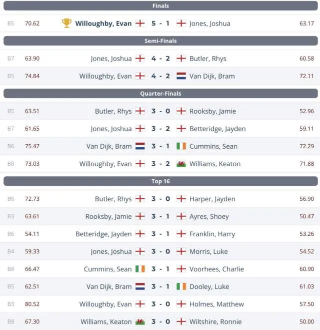 jeugd afdeling van de PDC wist Bram van Dijk de halve finale te halen. De Brabander deed het in het tweede event nog beter, Van Dijk wist het toernooi te winnen door in de finale af te rekenen met Oliver Allenby. Van Dijk stond slechts vier legs af in de vijf wedstrijden op weg naar de finale.