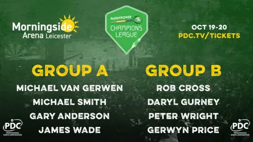 De poules voor de Champions League of Darts zijn inmiddels bekend gemaakt door de PDC. Michael van Gerwen zal in de groepsfase direct aan de bak moeten met een paar zware tegenstanders.
