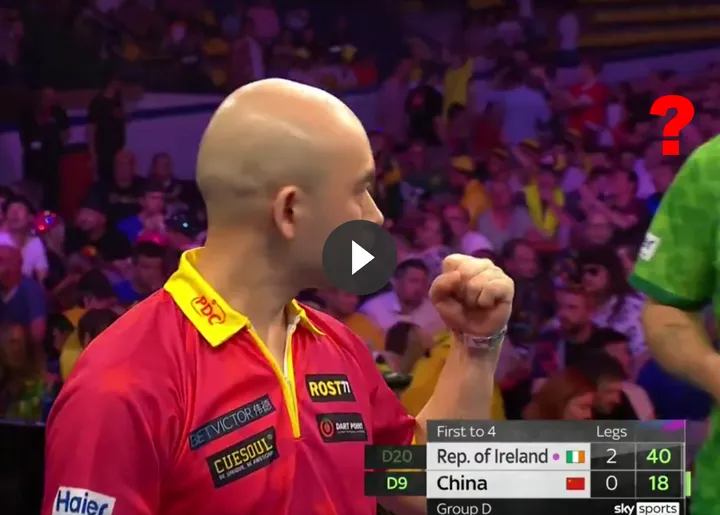 Het zorgde voor een nogal ongemakkelijk moment zoals we enkel tijdens dit toernooi meemaken. Toch lieten de Chinezen zich niet kennen en ze wisten de partij zelfs nog om te keren waarbij ook deze leg werd gewonnen. Een 4-2 overwinning op de Ieren was het resultaat maar toch mocht het niet baten. Op legsaldo kropen William O'Connor en Keane Barry door het oog van de naald.