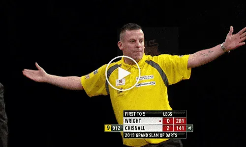 Darren Webster. Er zijn (nog) geen beelden beschikbaar en dus blikken we daarom terug op de 9-darter die Chisnall in 2015 op de Grand Slam of Darts gooide tegen