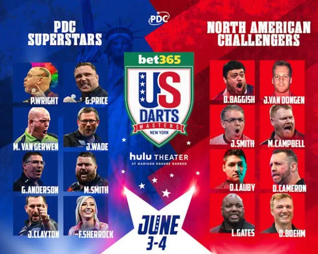 De PDC zal op 3 en 4 juni te gast zijn in Amerika voor de US Darts Masters. Hierbij zullen 8 PDC topspelers het opnemen tegen 8 Noord-Amerikanen. Van de partij zijn twee Nederlanders in de vorm van