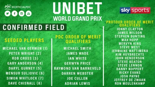 Het International Darts Open is gisterenavond tot haar climax gekomen en daarmee is ook het deelnemersveld voor de World Grand Prix bevestigd.