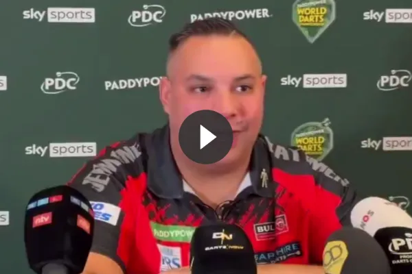 Hij spreekt hier over dat hij het moet opnemen tegen het 16-jarig talent maar de twee zitten aan een hele andere kant van het bracket en dus zit een ontmoeting tussen de twee op het podium van Ally Pally er voorlopig nog even niet in.