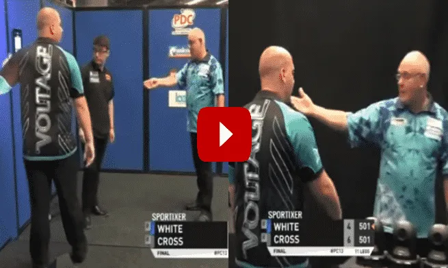 Ian White in de finale te verslaan van de Players Championship 13. Maar Diamond White was er na afloop niet over te spreken en er ontstond voor de camera's een discussie tussen het duo. Zelfs tijdens het interview met Rob Cross kon White het niet laten om op de achtergrond nog van hem te laten horen. Beelden van de discussie zijn hieronder te bekijken en na 48 seconden hoor je Ian White 'Lucky' roepen.