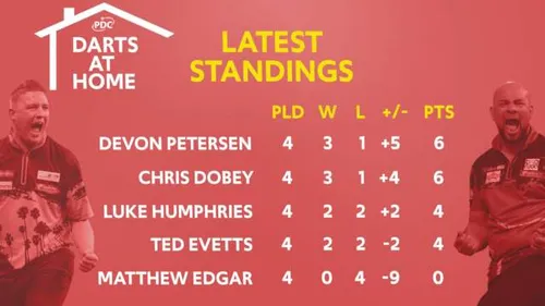 Devon Petersen die overwinningen boekte op Chris Dobey (4-1), Matthew Edgar (4-2) en Ted Evetts (4-2). Hij moest alleen zijn meerdere erkennen in Luke Humphries (2-4) die daarbij een gemiddelde gooide van 109,10.
