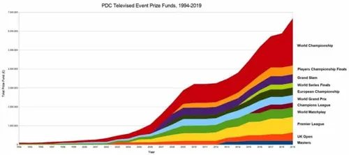 Forse stijging prijzengeld PDC in kaart gebracht van 1994 tot 2019